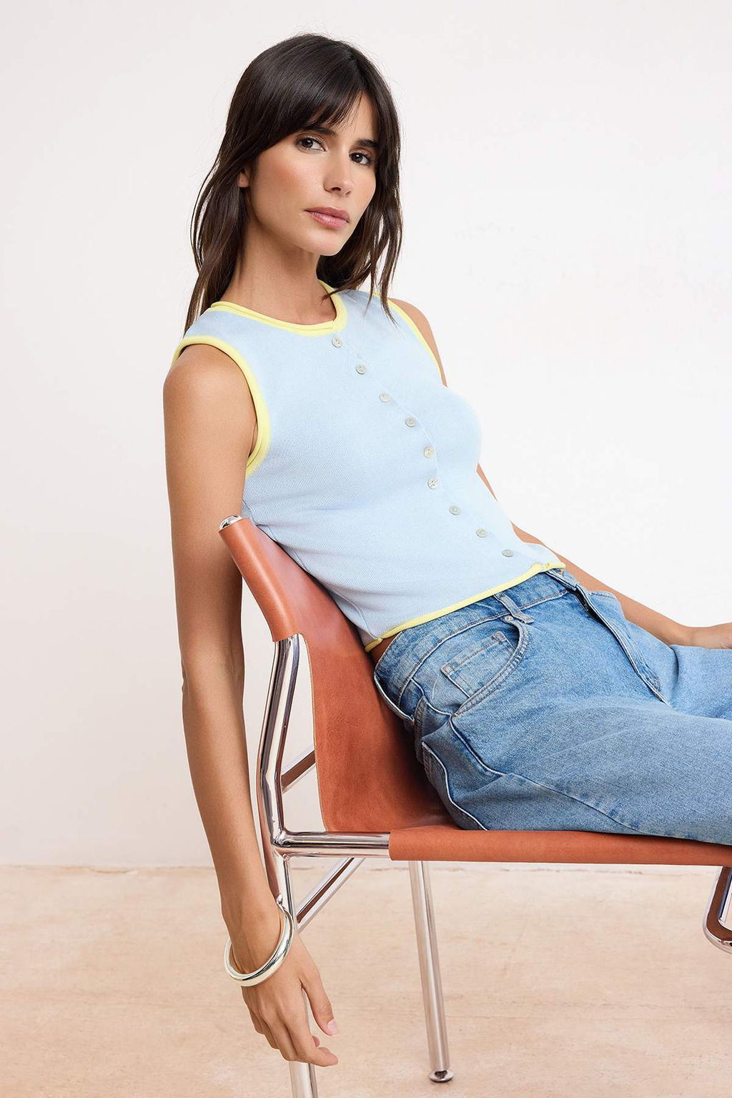 Ac?k Mavi Fitted Bisiklet Yaka Renk Bloklu Yelek TWOSS26YE00024