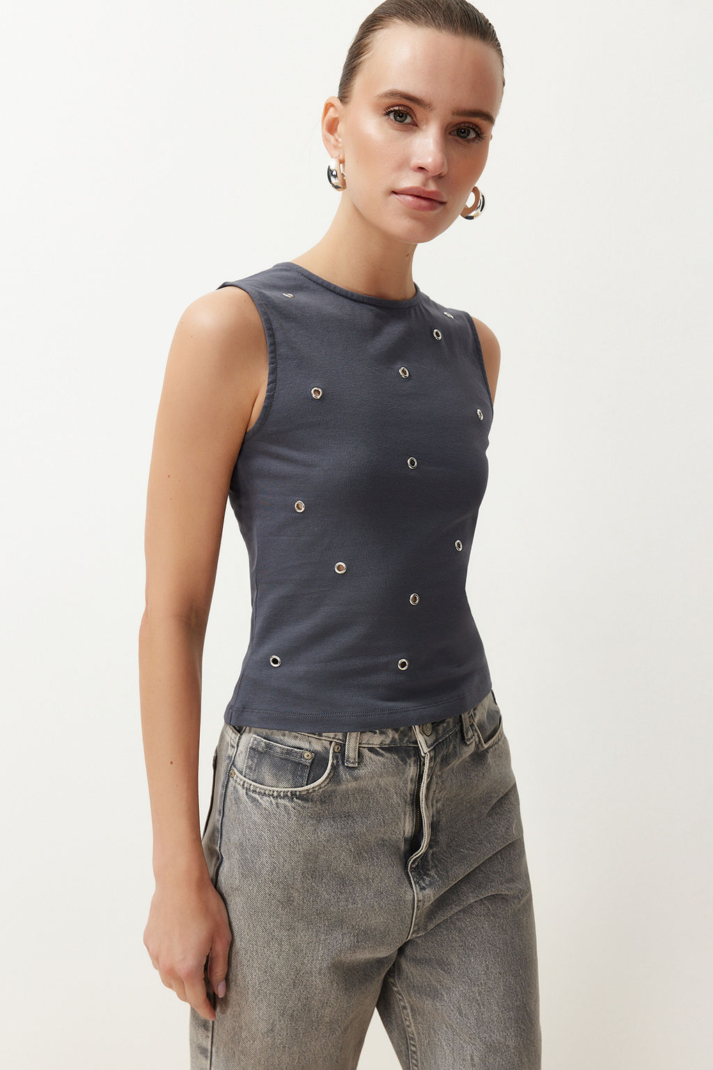 Antrasit Fitted/Vucuda Oturan Bisiklet Yaka Kul Gozu Detayl? Orme Atlet TWOSS24AL00046