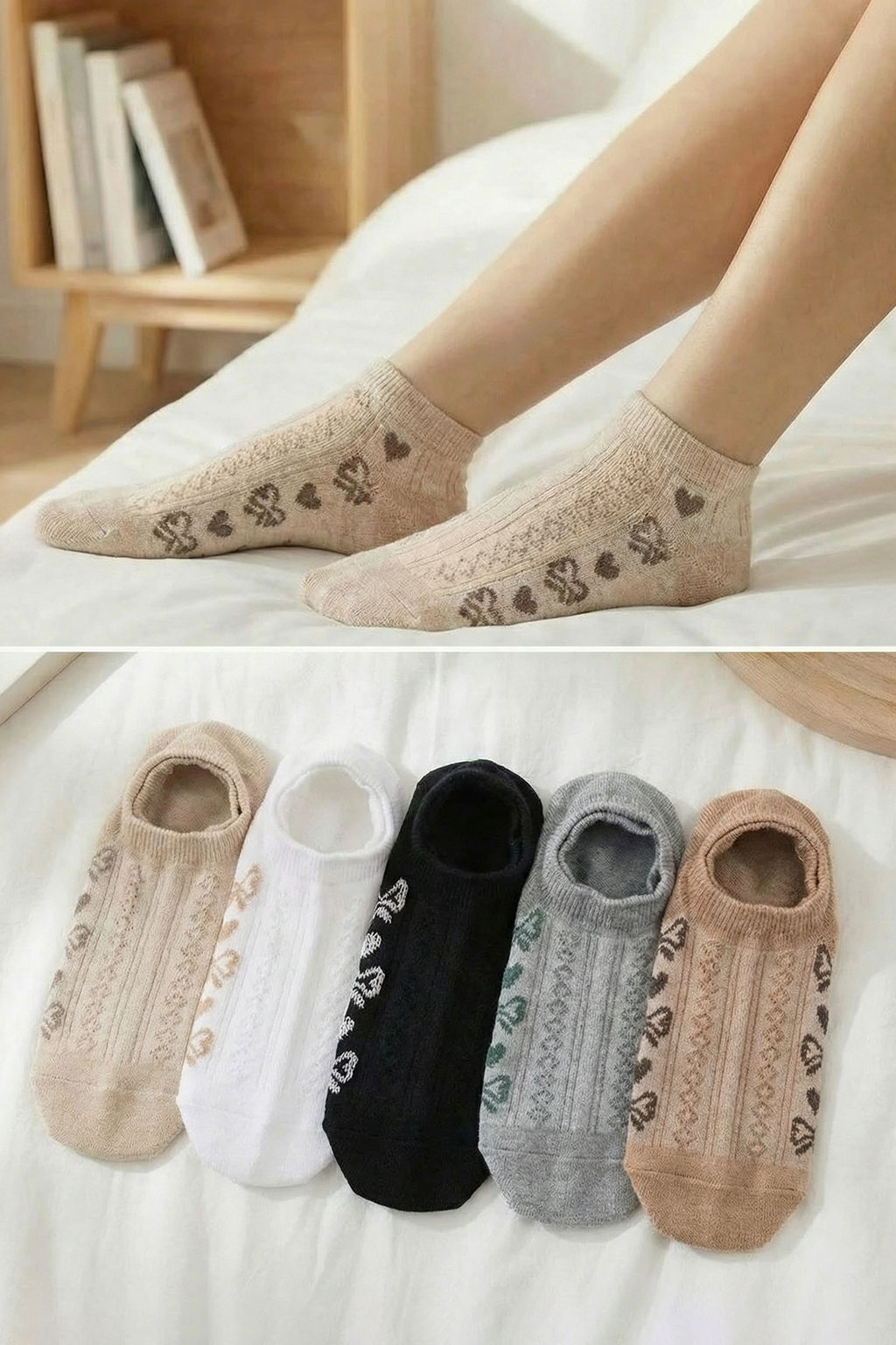 Siyah-Bej 5li Kalp Jakar Orme Corap THMSS26CO00009