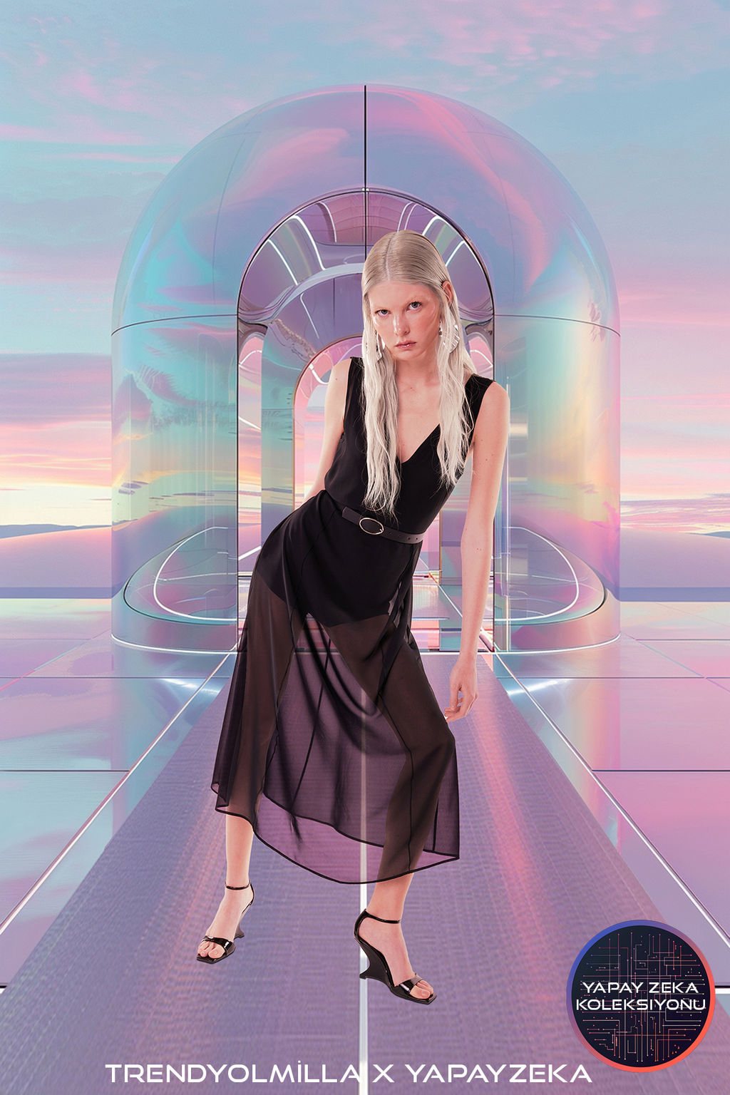 X Yapay Zeka Siyah Ici Tulum Detayl? Suni Deri Kemerli Dokuma Sifon Elbise TPRSS24EL00183