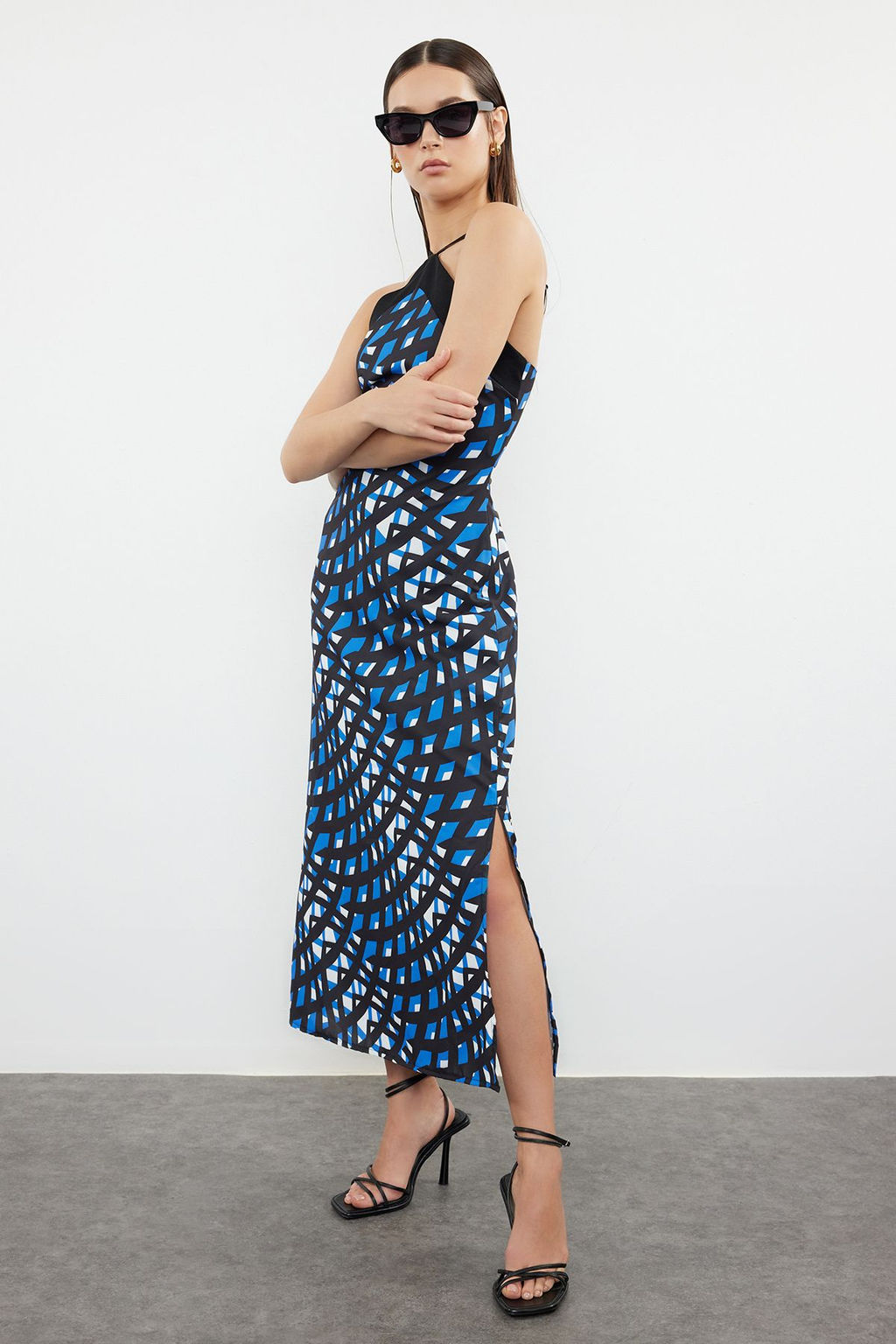 Siyah Geometrik Desenli Duz Kesim Dokuma Elbise TWOSS24EL01039