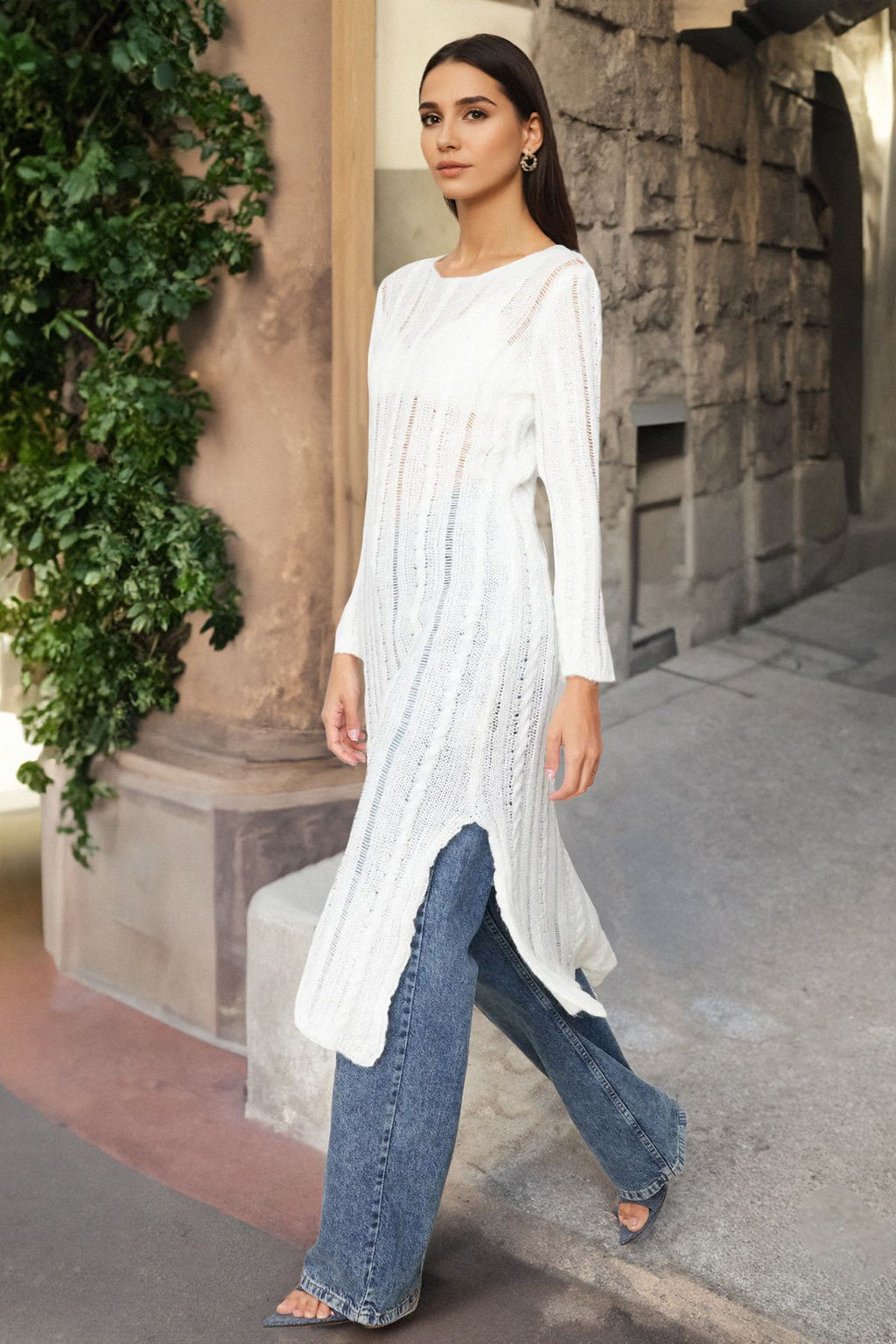 Ekru Yumusak Dokulu Gevsek Orgu Detayl? Triko Maxi Elbise TWOSS24EL00904