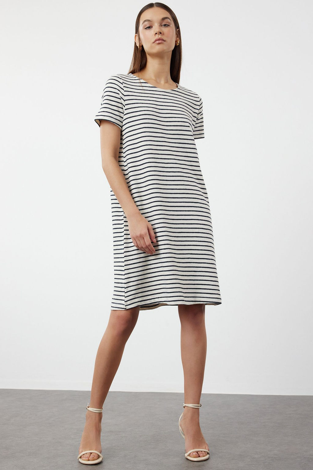 Ekru Mini Triko Cizgili Elbise TWOSS24EL01041