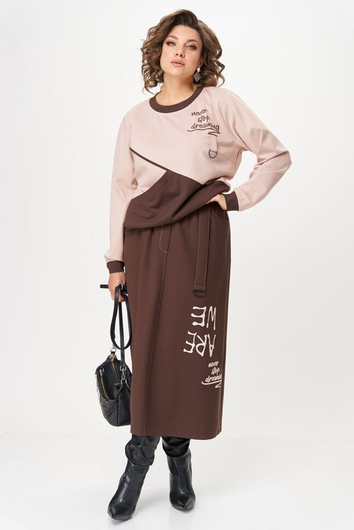Костюм Aira Style 24129 пудра+коричневый