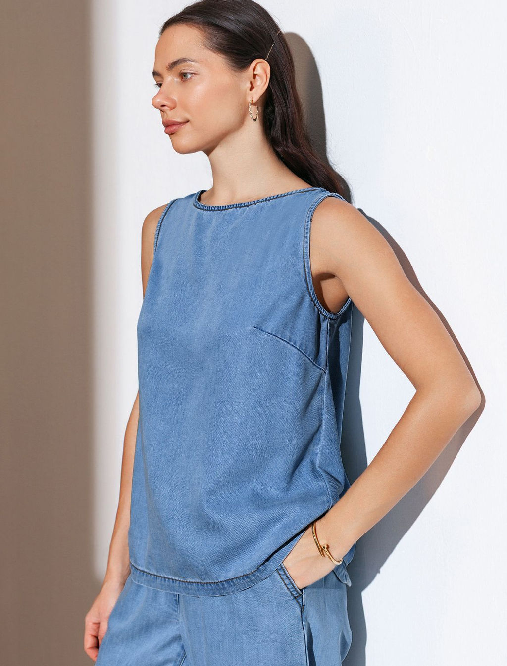 Топ с вырезом лодочка и асимметричным разрезом на спине из джинсового лиоцелла