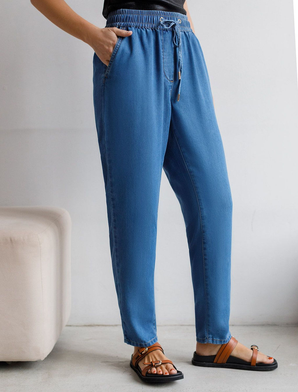 Брюки бананы с поясом на резинке из джинсового лиоцелла
