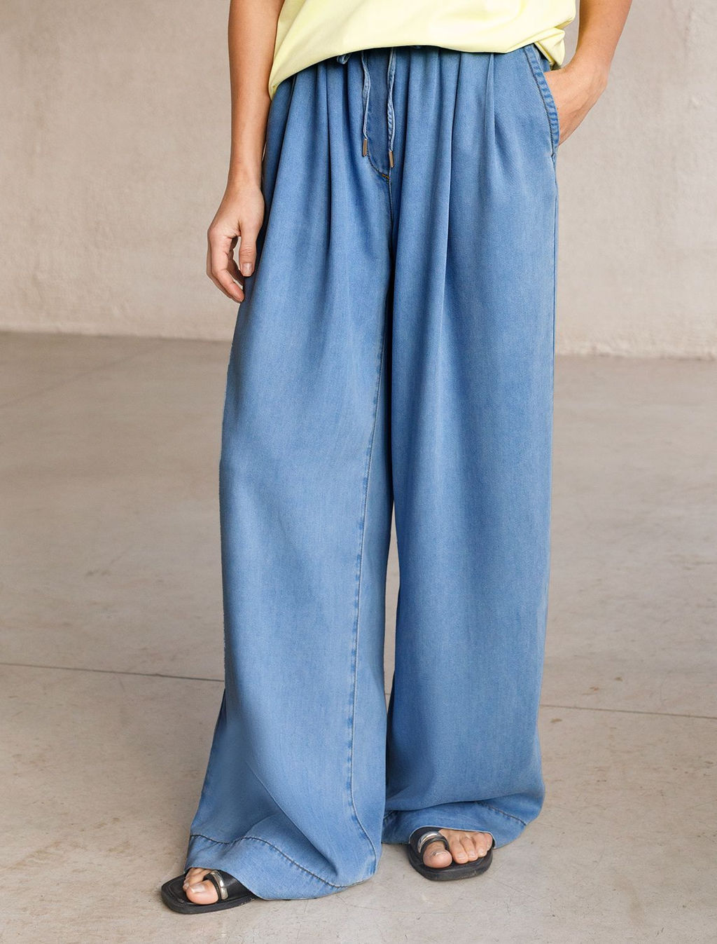 Брюки-палаццо с поясом на резинке из джинсового лиоцелла