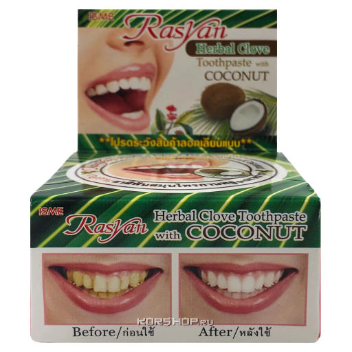 Травяная зубная паста с гвоздикой и кокосом Rasyan, Таиланд, 25 г Акция