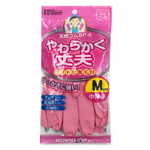 Перчатки хоз. средней толщины из каучука с хлопковым покрытием розовые Dunlop H.P. (размер M), Япония Акция