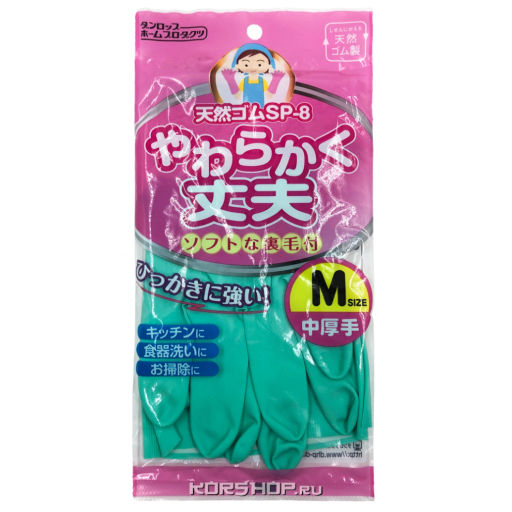 Перчатки хоз. средней толщины каучуковые с хлопковым покрытием зеленые Dunlop H.P. (размер M), Япония Акция