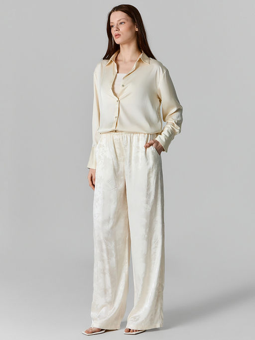 Брюки женские прямые бежевые с цветочным принтом