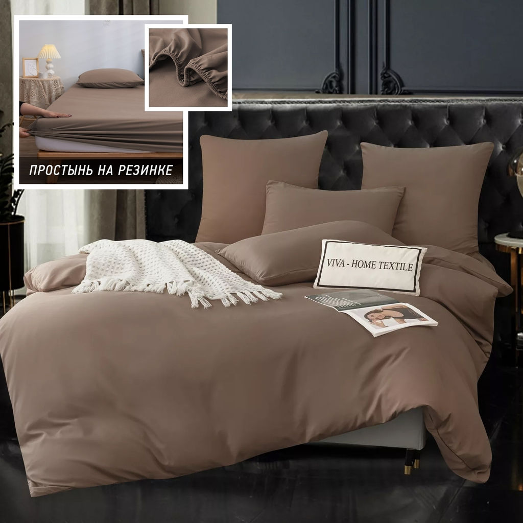 Комплект постельного белья Однотонный Сатин на резинке CSR054 2 спальный