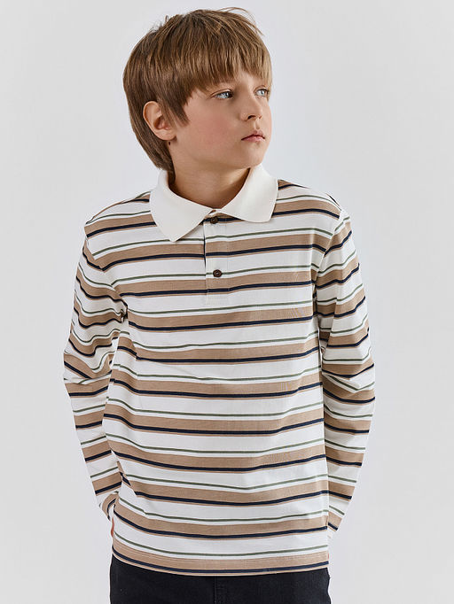 Поло для мальчиков в бежевую полоску