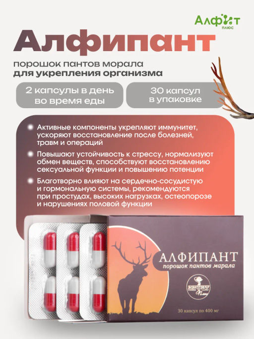 Бад "Алфипант" (порошок пантов марала) для укрепления организма Алфит Плюс 1809