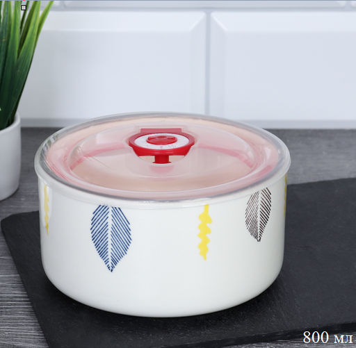 Салатник глубокий 800 мл крышка с клапаном / BCF-120 /уп 10/ Фарфор