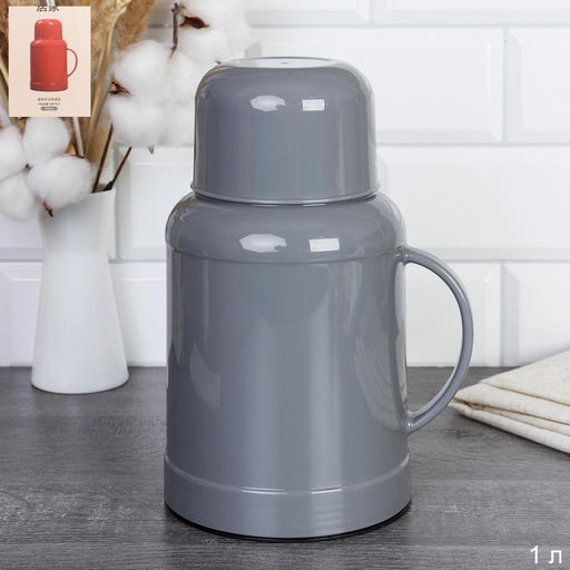 Термос 1 л со стеклянной колбой Ретро / G-930 /уп 20/ Серый