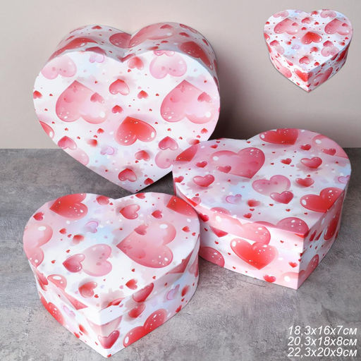 Коробка подарочная 3 штуки Сердце / 1157 /уп 24/16*18.3*7/18*20.3*8/20*22.3*9cm