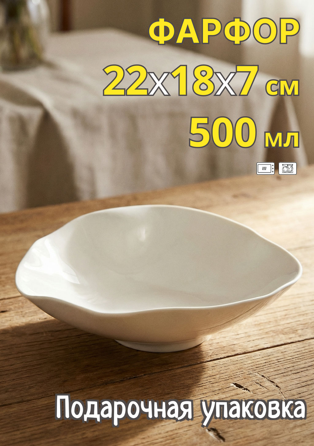 Салатник, 22х18х7 см, 500 мл, фарфор P, белый, Волнистый край, White ocean