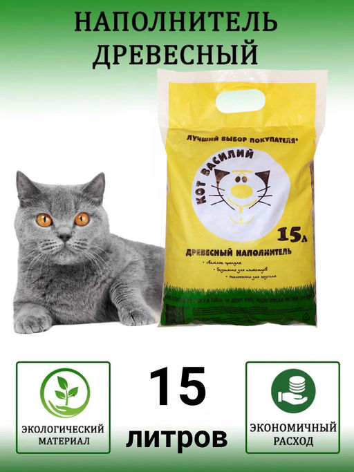 Наполнитель для кошек 15л древесный КОТ ВАСИЛИЙ