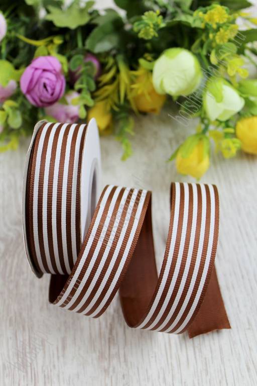 Лента репсовая 2,5 см*20 ярд "Полоска" SF-1312, темно-коричневый №32