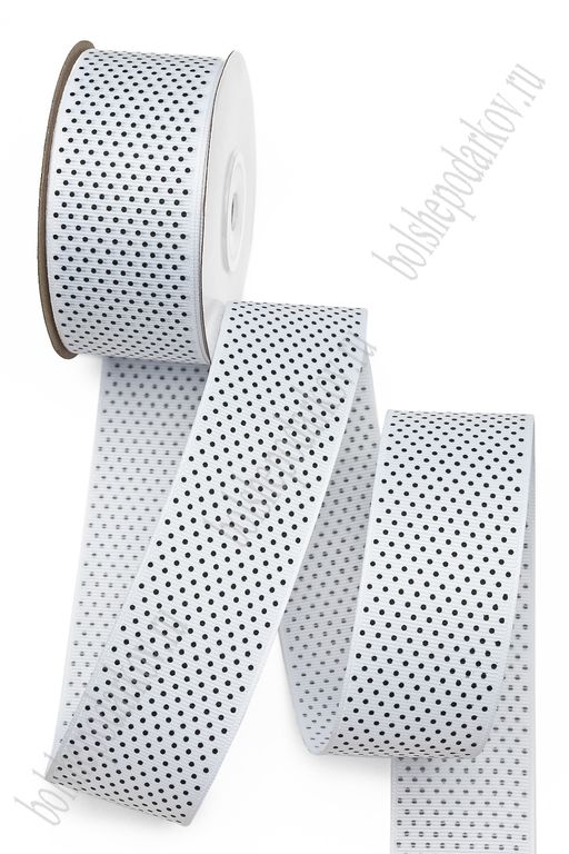 Лента репсовая 4 см*20 ярд "Мелкий горох" (SF-181) белый №01