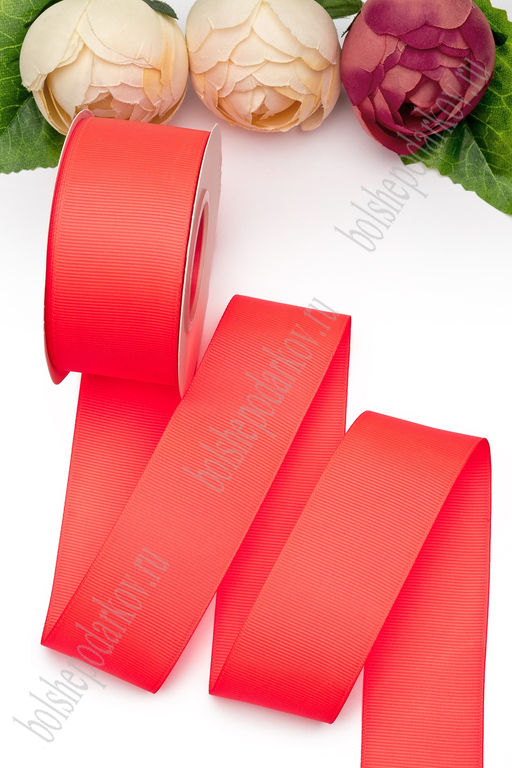 Лента репсовая 4 см*20 ярд "1 сорт" (SF-1349) неоновый ярко-коралловый №186