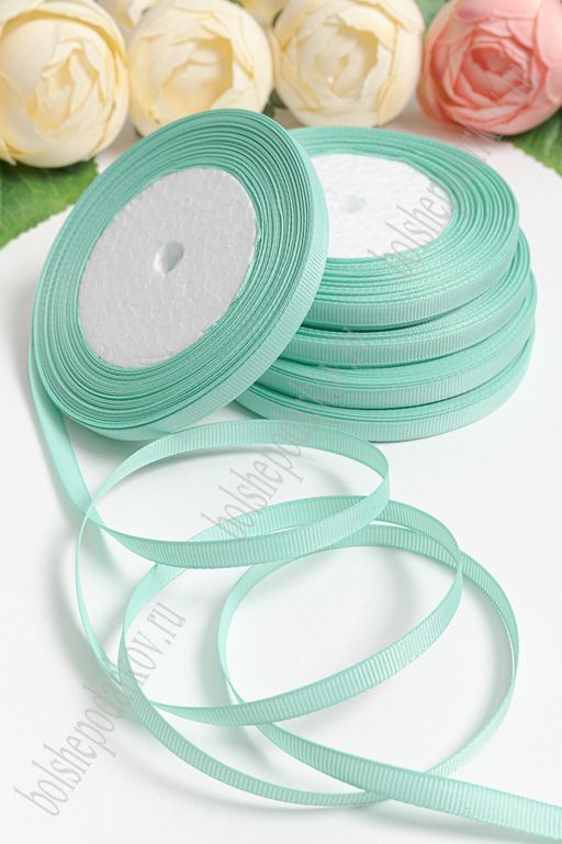 Лента репсовая 0,6 см*20 ярд "1 сорт" (10 бобин) SF-1722, аквамариновый №218