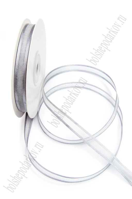 Лента органза с атласными краями 1 см*25 ярд (SF-8086) серый №59