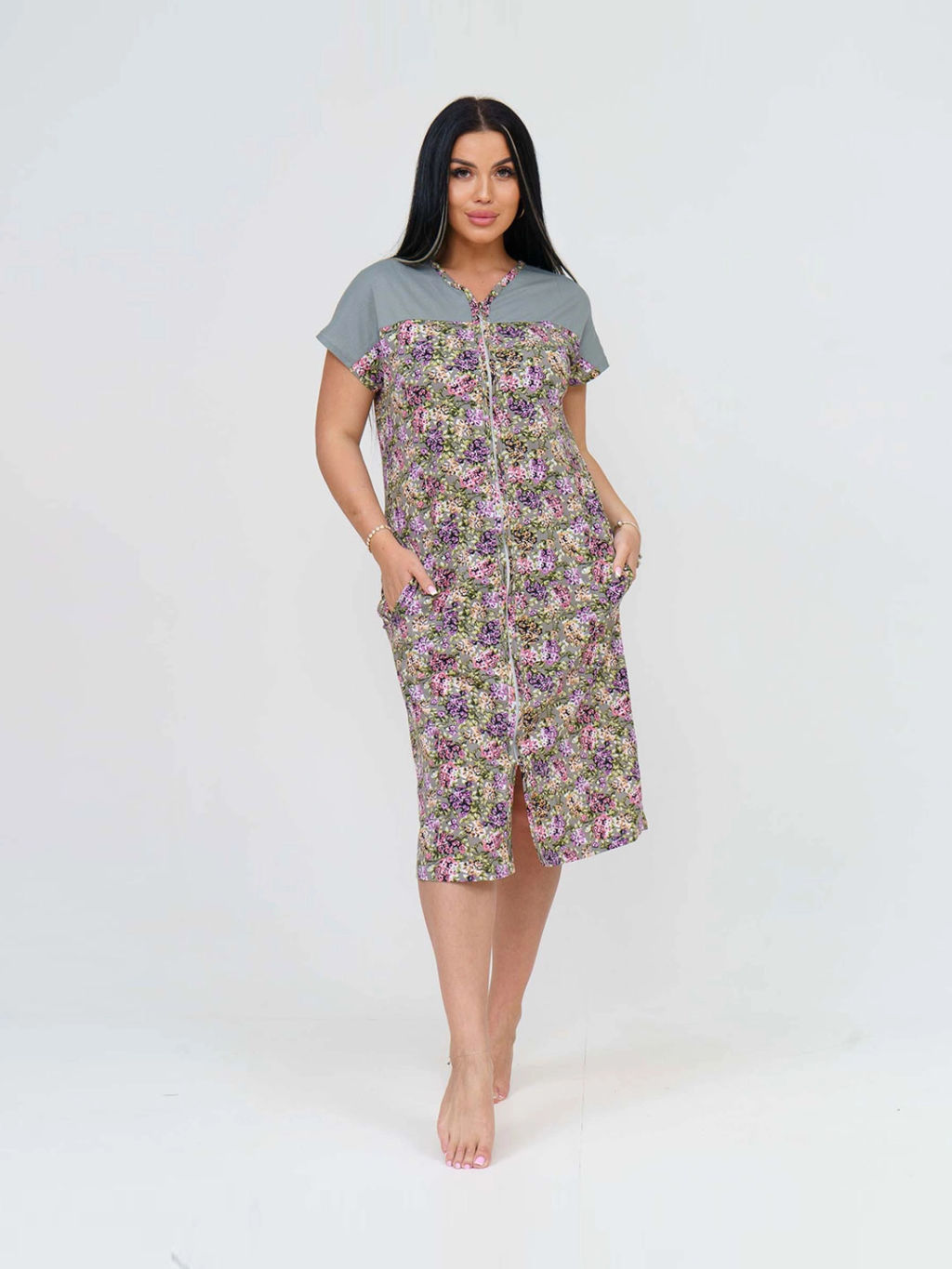 Халат женский, цвет зеленый розовый фиолетовый оранжевый