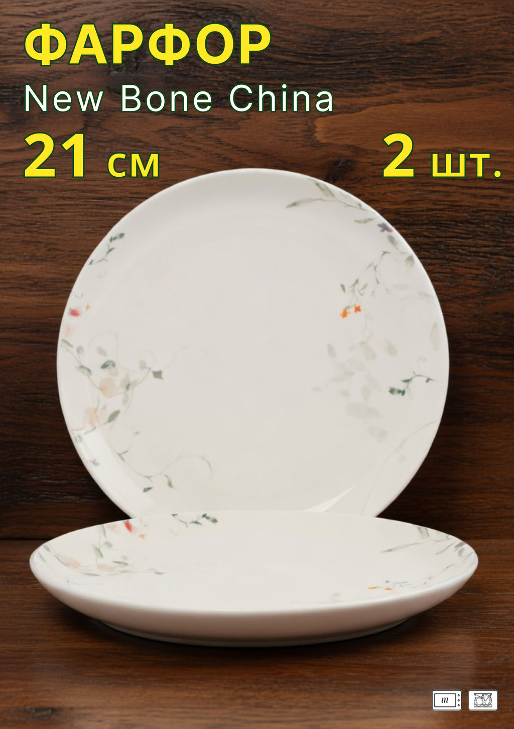 Тарелка закусочная, 21 см, 2 шт, фарфор N, белая, Цветы и листья, Primrose