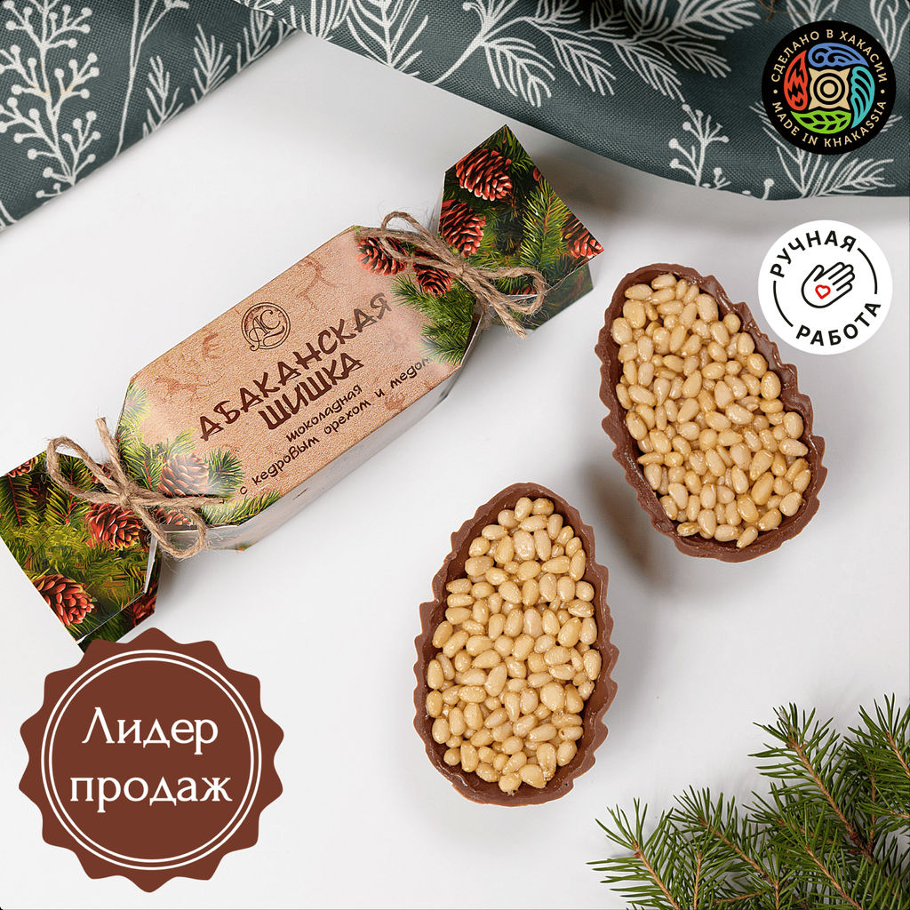 Шишка в картонной коробке (Шоколадное изделие кедровым орехом и медом)