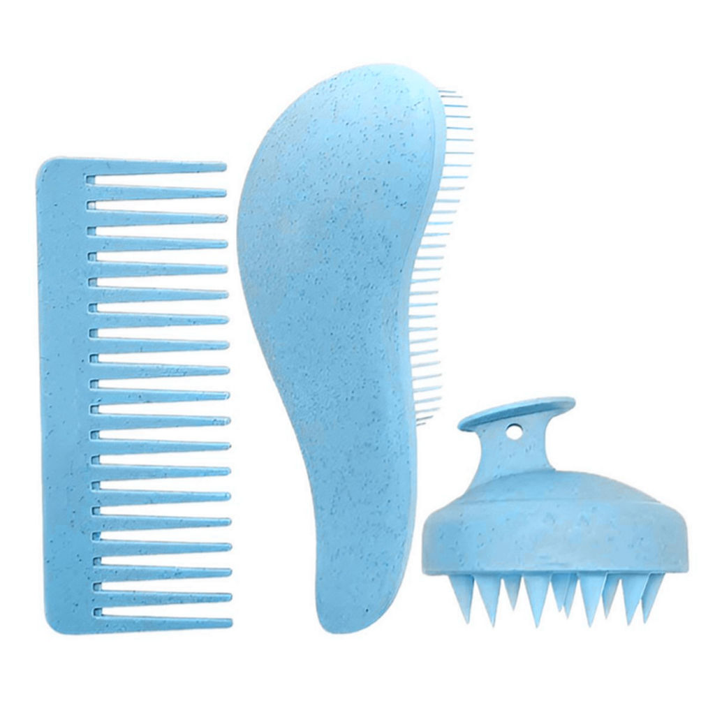 Kristaller Набор для волос: щетка-массажер для мытья головы, гребень, расческа-капля, голубой