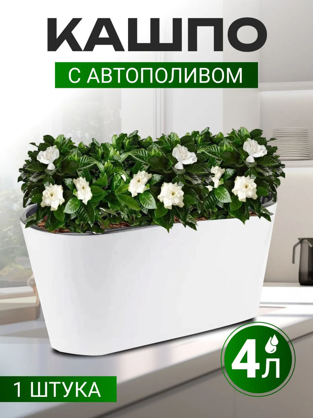 Горшок цветочный "Лея" 4л овальный двойной (с автополивом) (белый) М8559