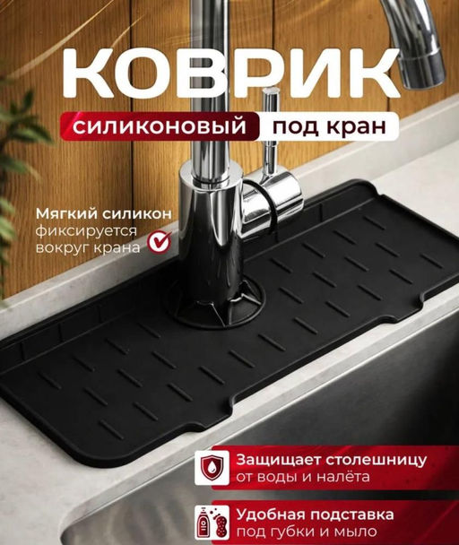 Коврик на кухню для мойки, черный цвет, силиконовый