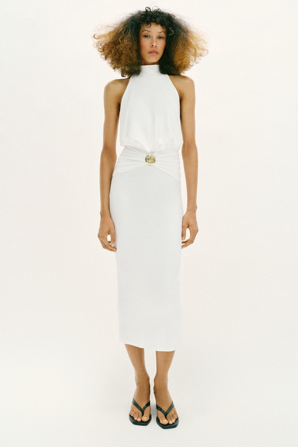 VESTIDO HALTER DRAPEADO / Blanco roto