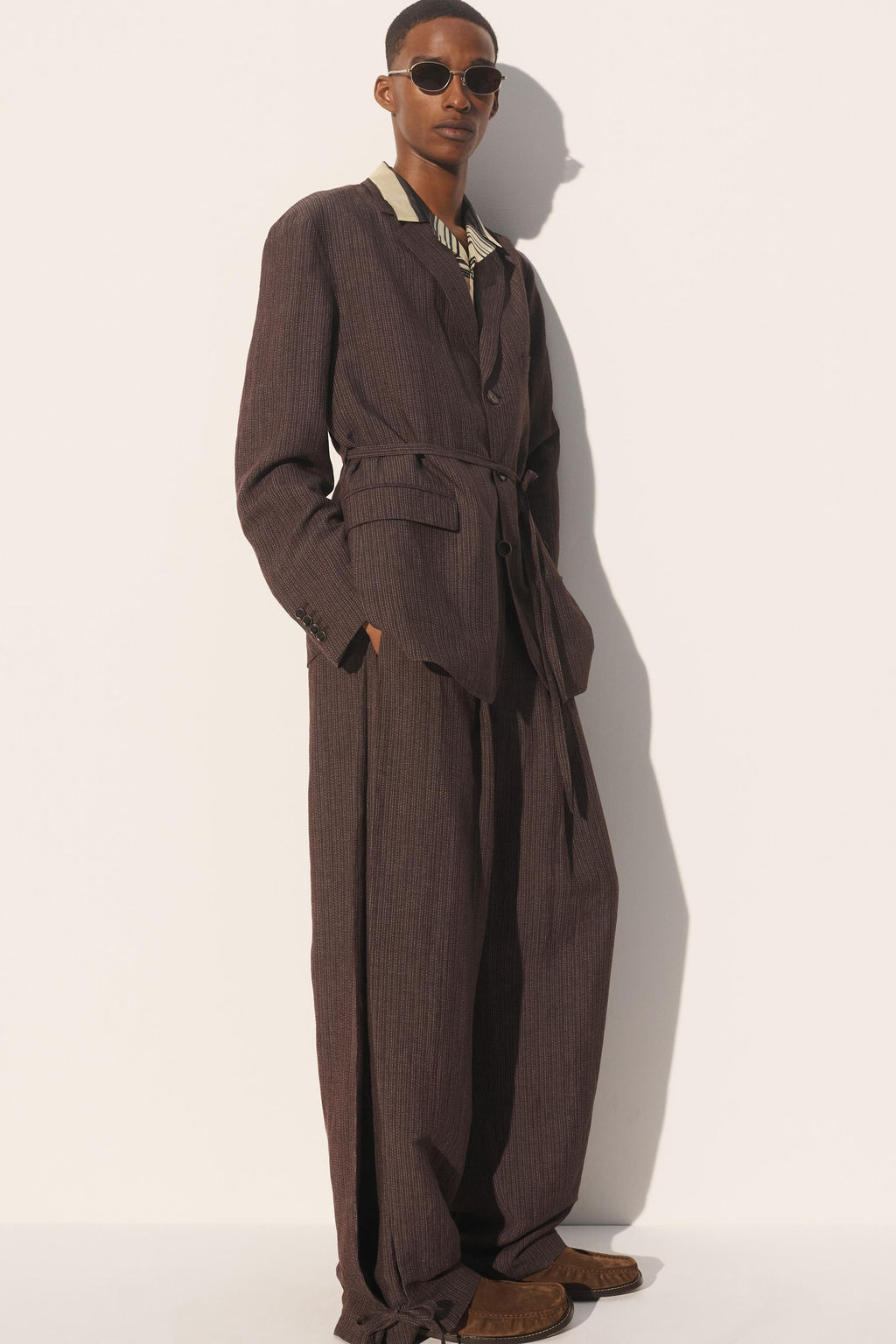 PANTAL?N PLIEGUES LATERALES TRAJE RAYAS VISCOSA - LINO / Marr?n oscuro