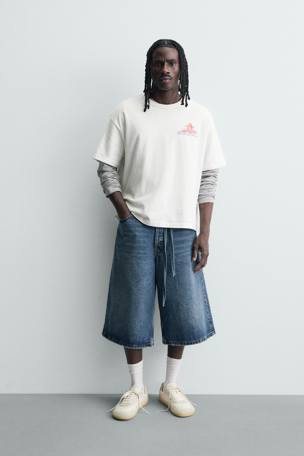 CAMISETA ESTAMPADOS BORDADOS COMBINADOS / Blanco roto