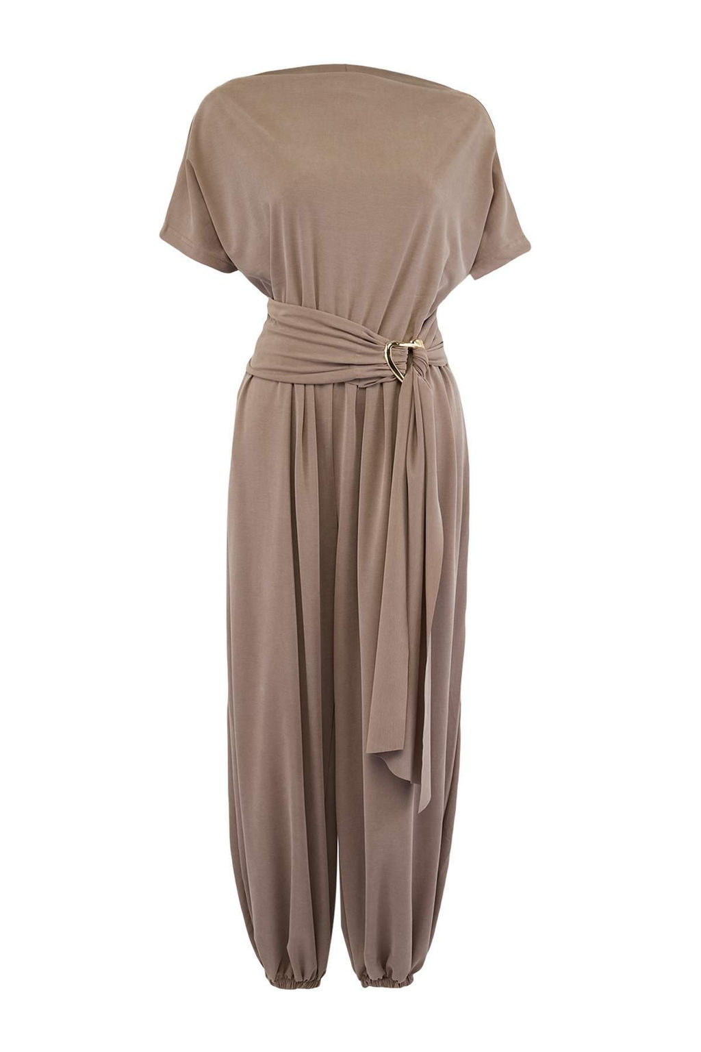 Koyu Vizon Duz Relaxed Kay?k Yaka K?sa Kemerli Genis Paca Uzun Modal Orme Tulum TWOSS26TU00036
