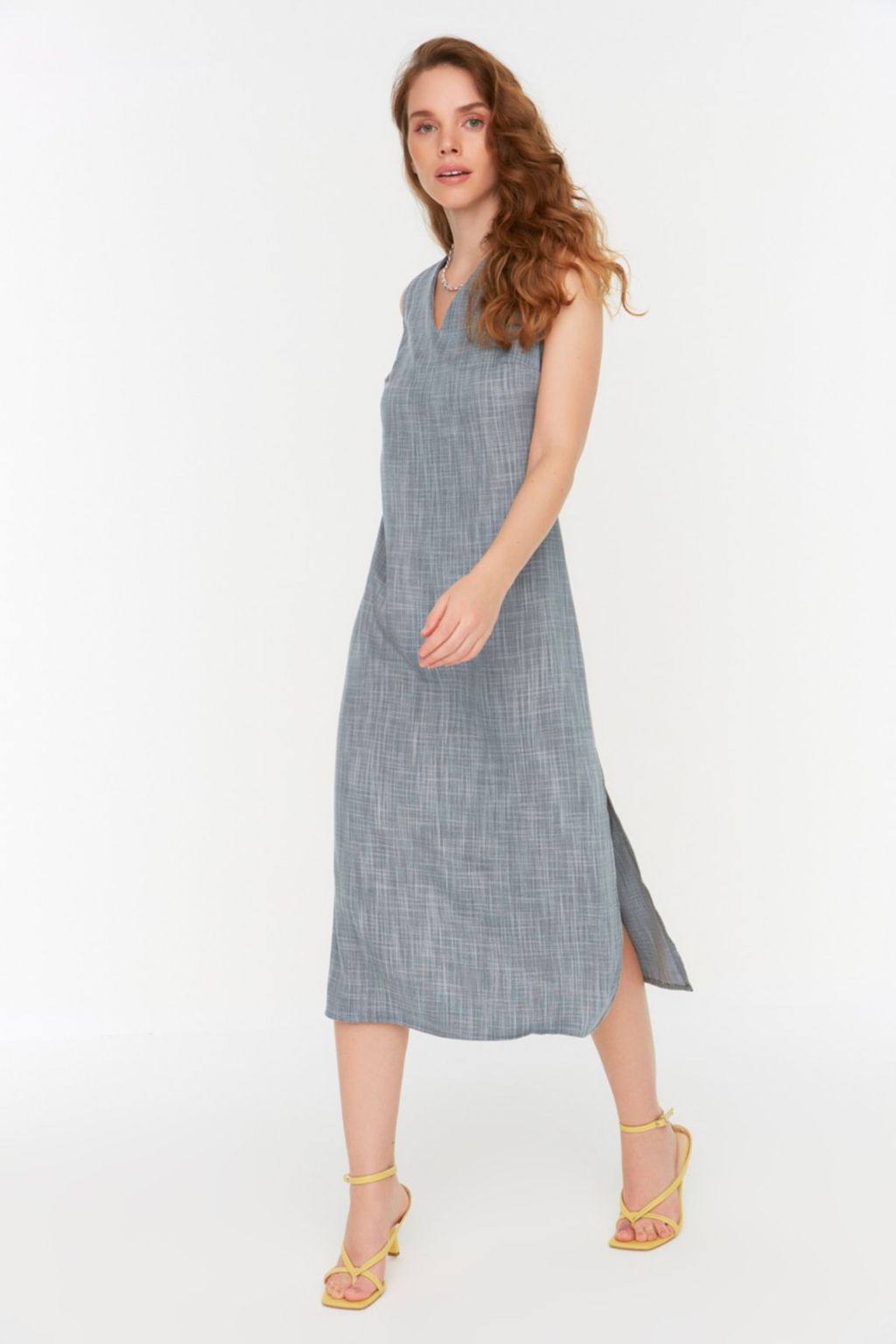 Siyah V Yaka Y?rtmac Detayl? Elbise TWOSS22EL1423
