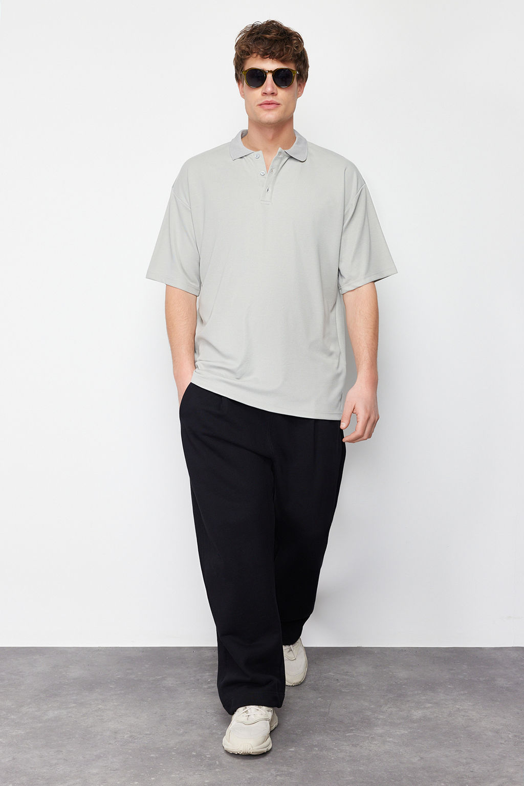 Tas Basic Oversize/Genis Kesim Tok Kumas Polo Yaka T-Shirt TMNSS24PO00012