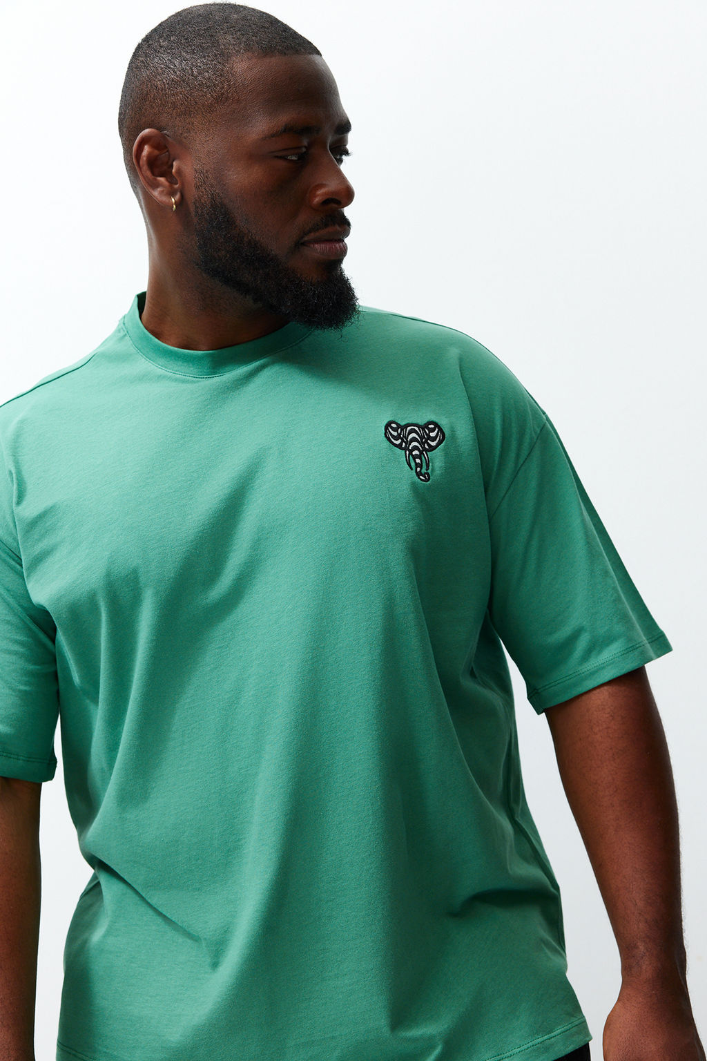 Yesil Oversize Buyuk Beden Hayvan Nak?sl? %100 Pamuk T-Shirt TMNSS24BF00025