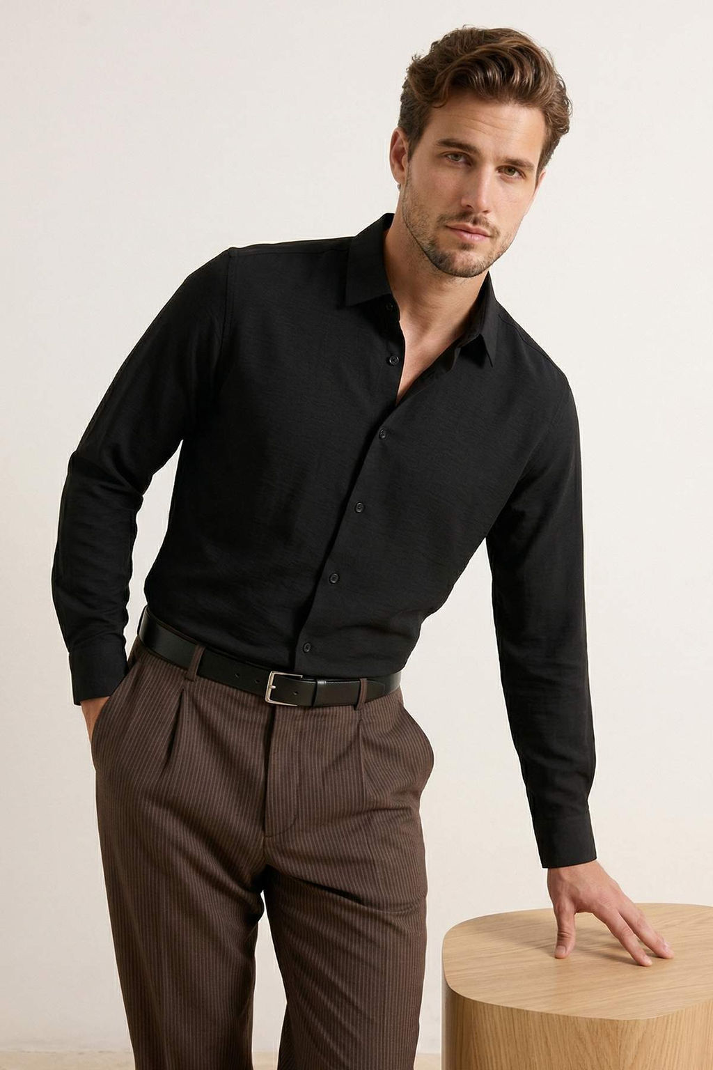 Siyah Regular Erkek Gomlek TMNSS26GO00028