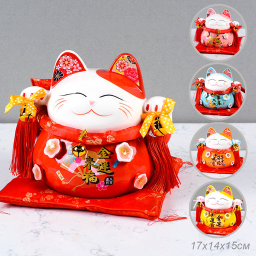 Копилка Кот манэки-нэко на коврике 17 см / 6731 /уп 18/