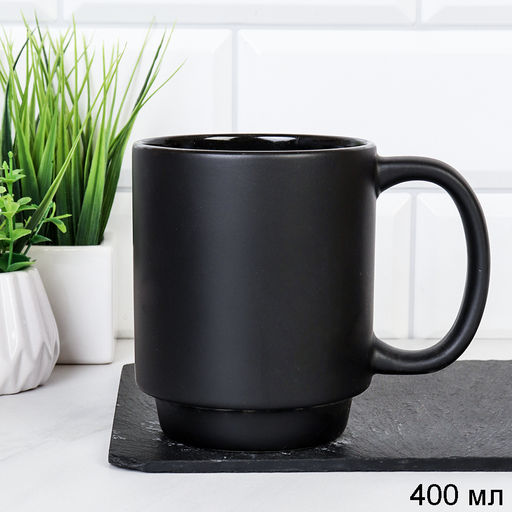 Кружка 400 мл Штабелируемая Черная / Q-244 /уп 48/ ПРОМО АКЦИЯ