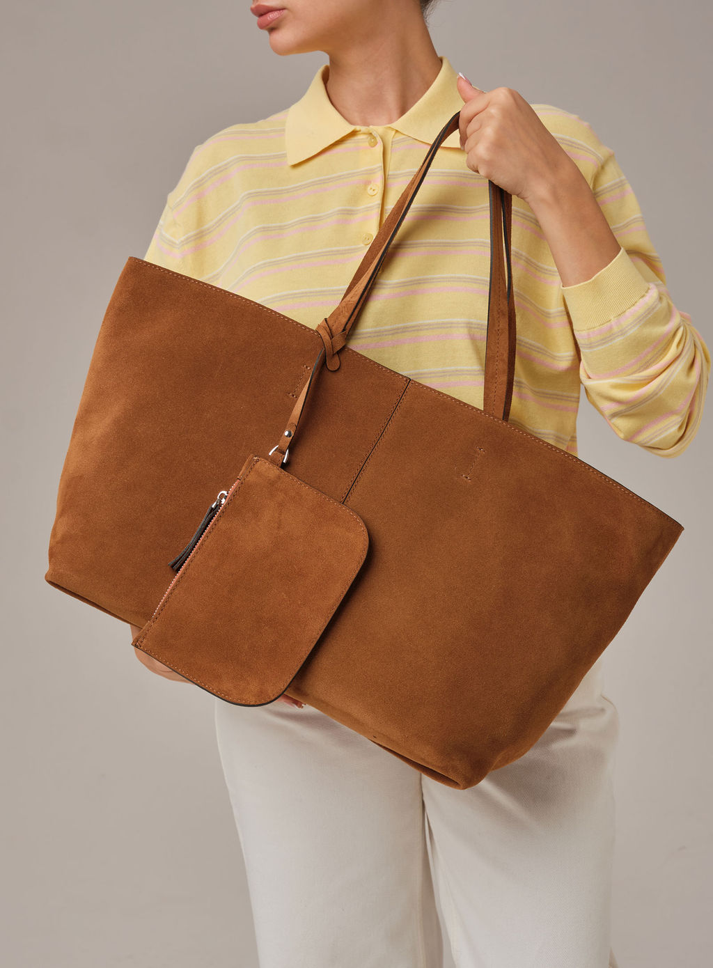 Замшевая сумка шоппер Texas DBR 31390 коричневый лист