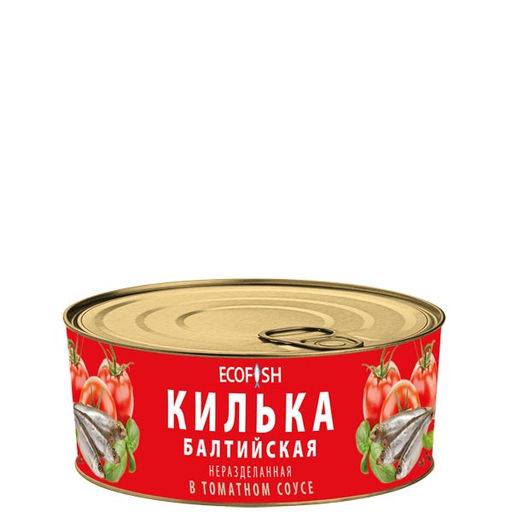 КИЛЬКА балтийская неразделанная в томатном соусе ECOFISH, 240гр