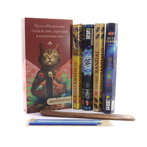 Набор MEDITATION2 благовония HEM с подставкой и восковые свечи с травами