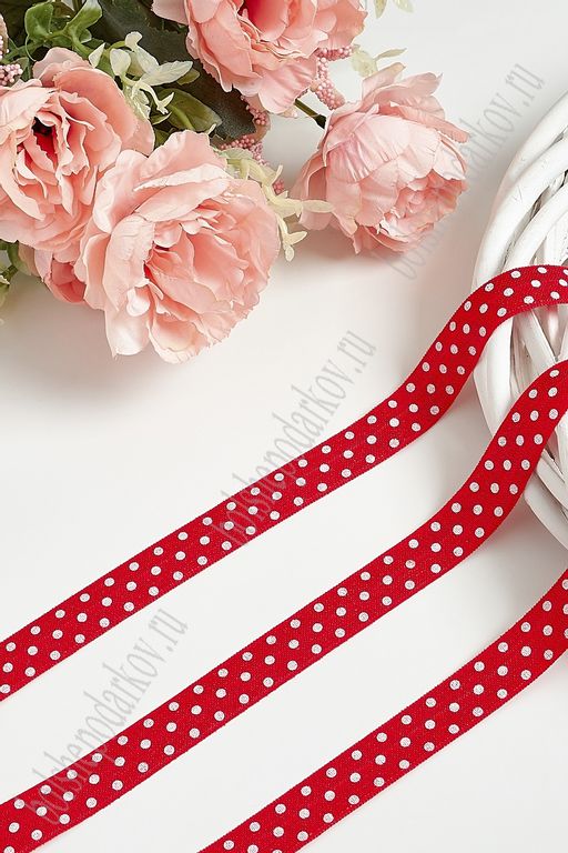 Тесьма эластичная 1,5 см*10 м "Горох" (SF-368-16) красный