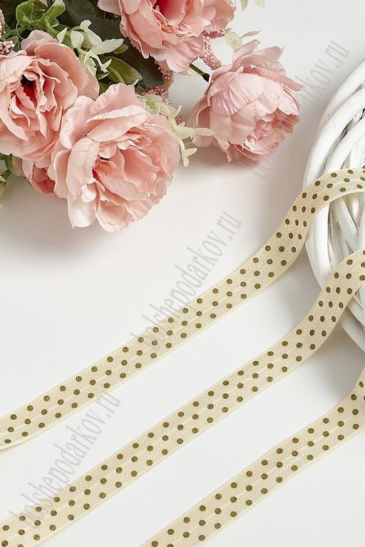 Тесьма эластичная 1,5 см*10 м "Горох" (SF-368-21) бежевый