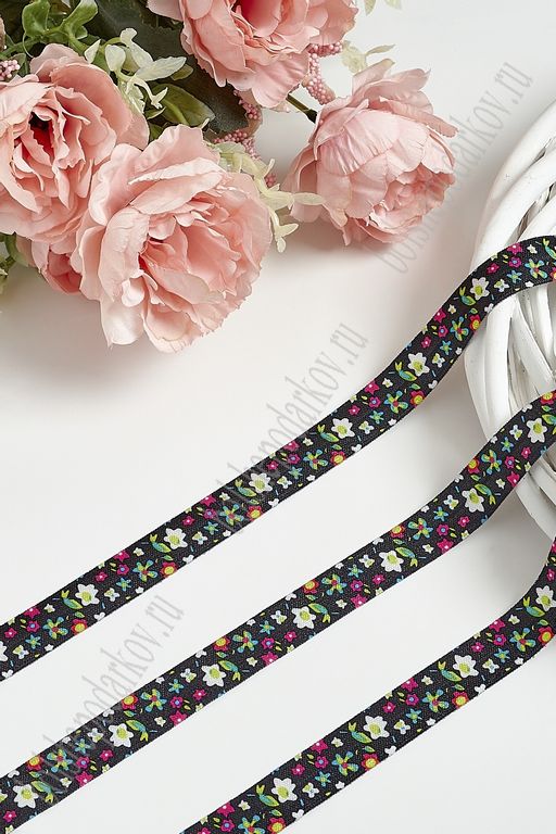 Тесьма эластичная 1,5 см*10 м "Цветы" (SF-368-9) черный